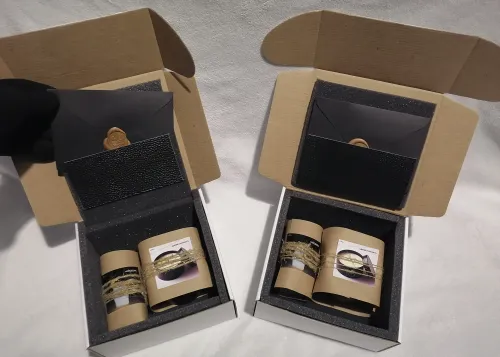 • Премиальная Упаковка: Каждая свеча поставляется в изысканной коробке с черной кожаной отделкой и поролоновым ложементом, подчеркивающей статус и эксклюзивность продукта.